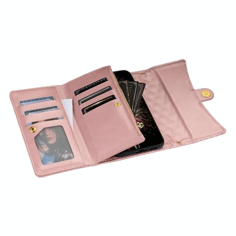 5. Λειτουργία πορτοφολιού πολλαπλών καρτών: Η υποδοχή κάρτας και η τσέπη πορτοφολιού με φερμουάρ και η θήκη μετρητών μπορούν να αποθηκεύσουν τις πιστωτικές σας κάρτες, τα μετρητά ή τα μικρά χαρτονομίσματα που χρειάζεστε καθημερινά.