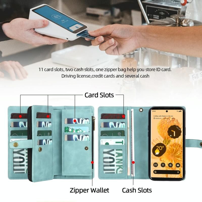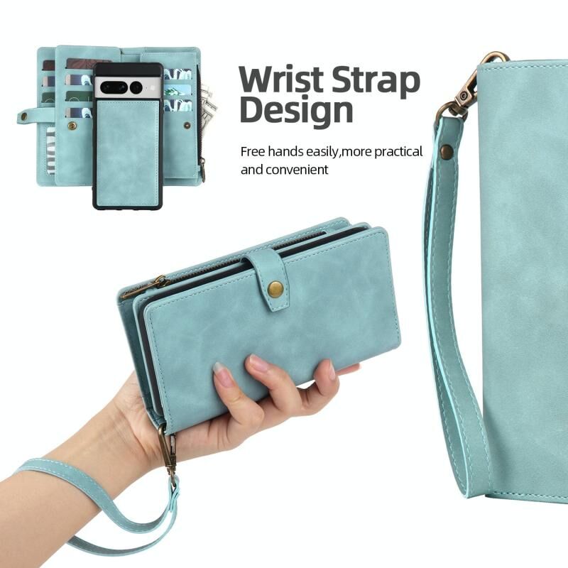 Θήκη τηλεφώνου από δέρμα με αποσπώμενο μαγνητικό πορτοφόλι με φερμουάρ για Google Pixel 6a (Μπλε)