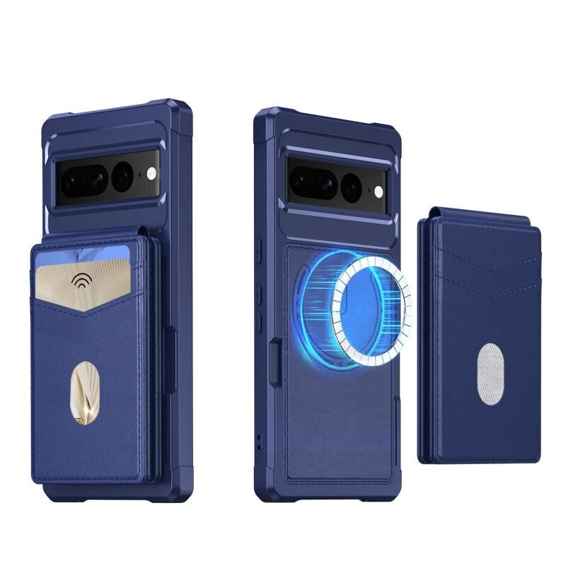 Θήκη τηλεφώνου από δέρμα με μαγνητική σύνδεση MagSafe και προστασία RFID 2-σε-1 για Google Pixel 7 (Μπλε)