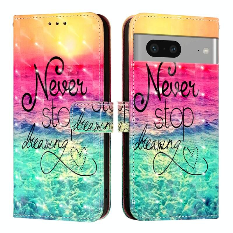 Θήκη τηλεφώνου από δέρμα με οριζόντια αναδίπλωση και τρισδιάστατη ζωγραφική για Google Pixel 7 (Κυνηγώντας Όνειρα)