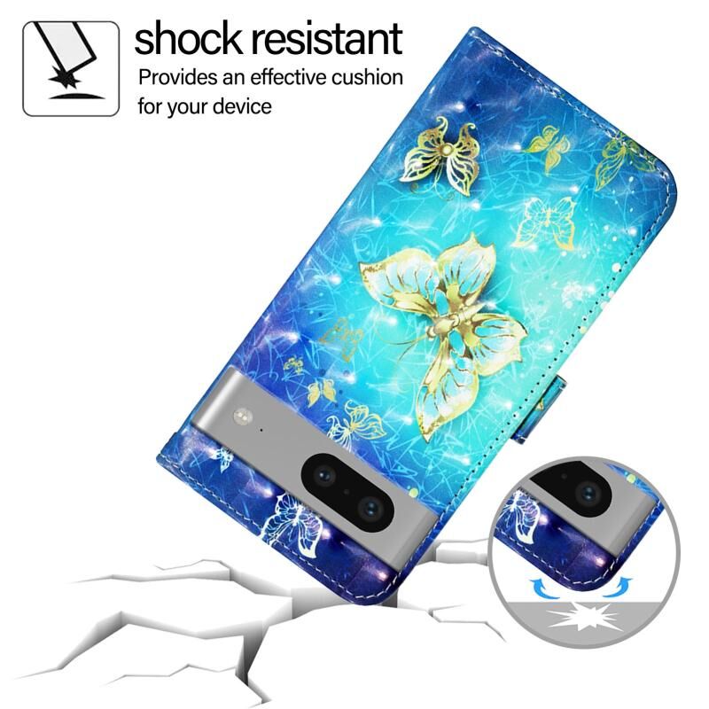 Θήκη τηλεφώνου από δέρμα με οριζόντια αναδίπλωση και τρισδιάστατη ζωγραφική για Google Pixel 7 (Χρυσή Πεταλούδα)