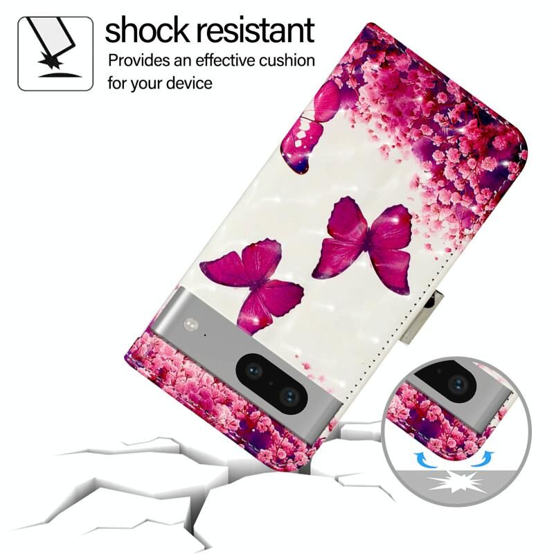 Θήκη τηλεφώνου από δέρμα με οριζόντια αναδίπλωση και τρισδιάστατη ζωγραφική για Google Pixel 7 (Ροζ Πεταλούδα)