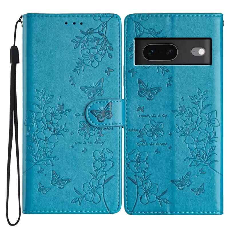 Θήκη τηλεφώνου από δέρμα για Google Pixel 7 5G, με πεταλούδες και λουλούδια (Χρυσό)