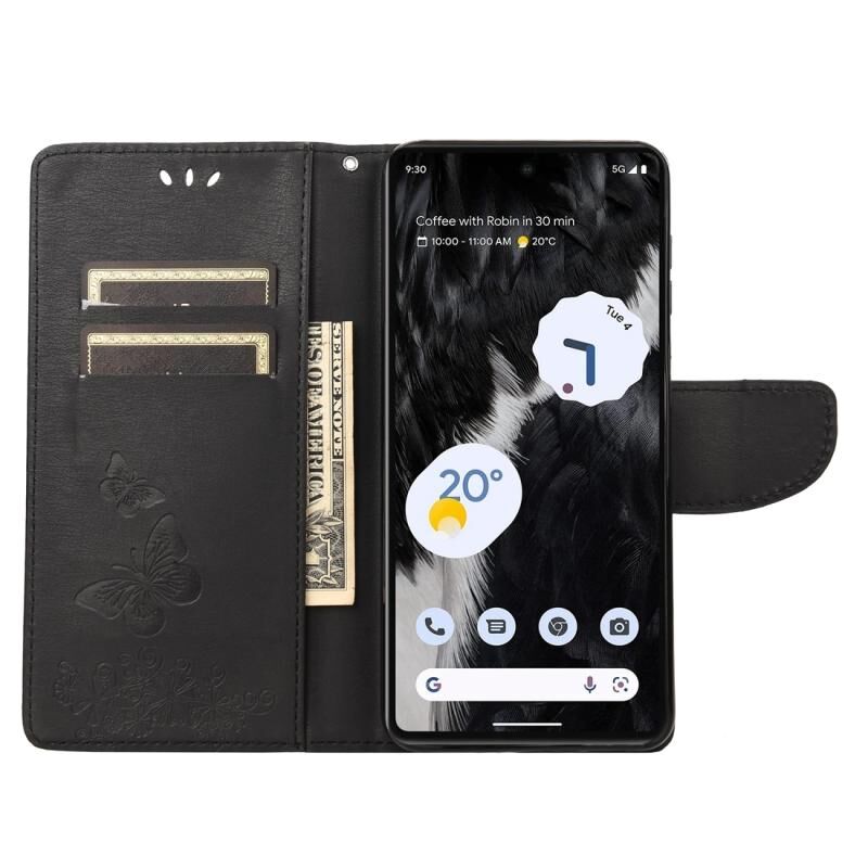 Θήκη τηλεφώνου από δέρμα με οριζόντιο άνοιγμα και ανάγλυφο σχέδιο πεταλούδας για Google Pixel 7 5G (Καφέ)