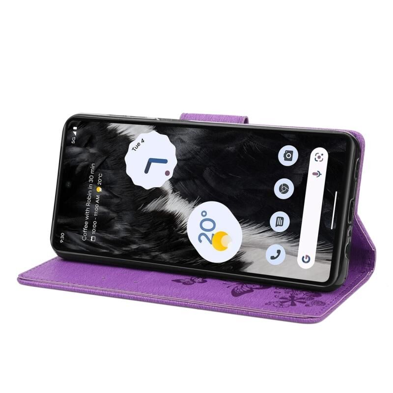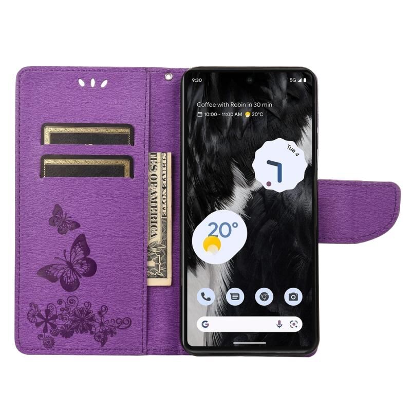 Θήκη τηλεφώνου από δέρμα με οριζόντιο άνοιγμα και ανάγλυφο σχέδιο πεταλούδας για Google Pixel 7 5G (Καφέ)