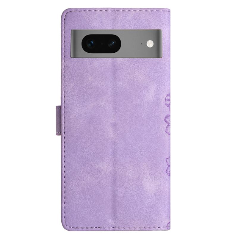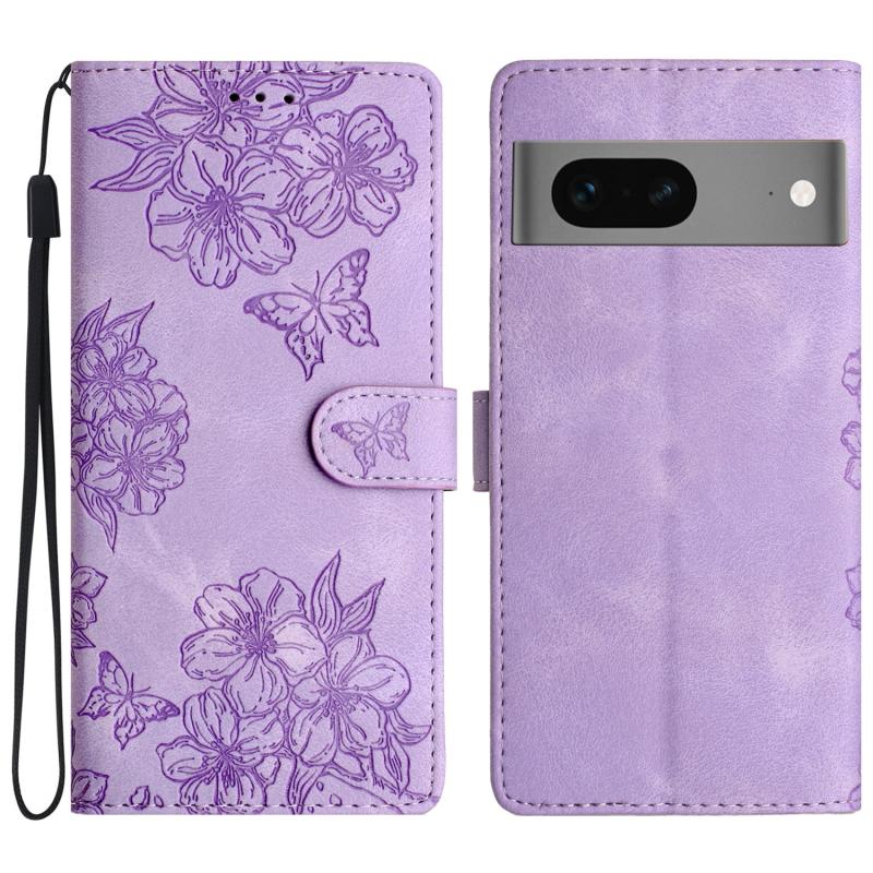 For Google Pixel 7 5G Cherry Blossom Butterfly Skin Feel Embossed PU Phone Case(Purple)