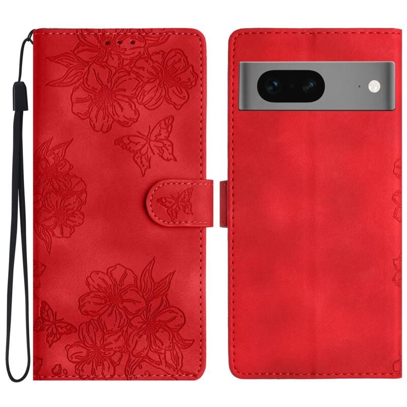 For Google Pixel 7 5G Cherry Blossom Butterfly Skin Feel Embossed PU Phone Case(Red)