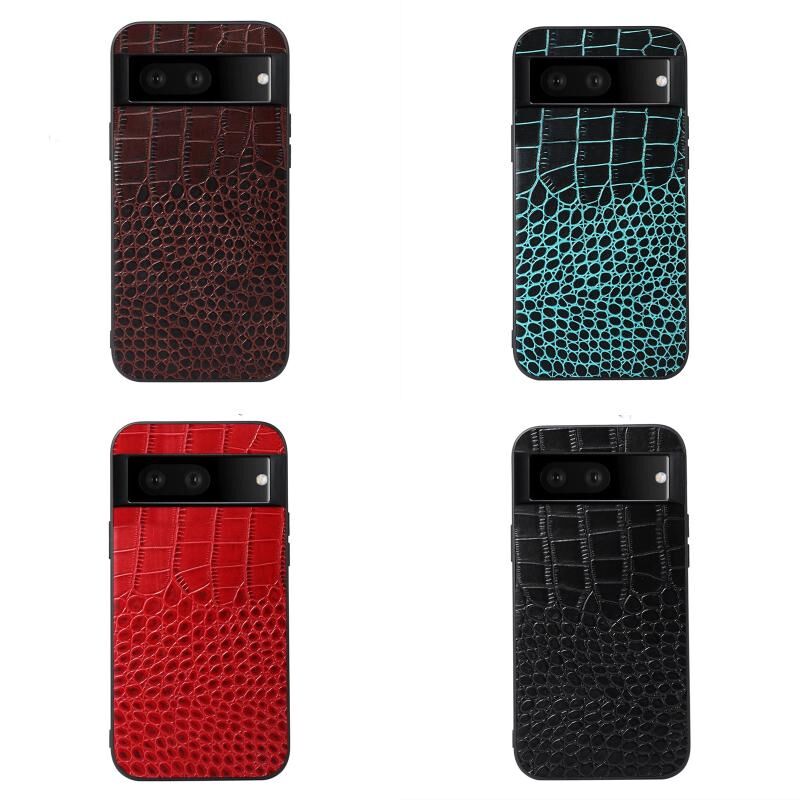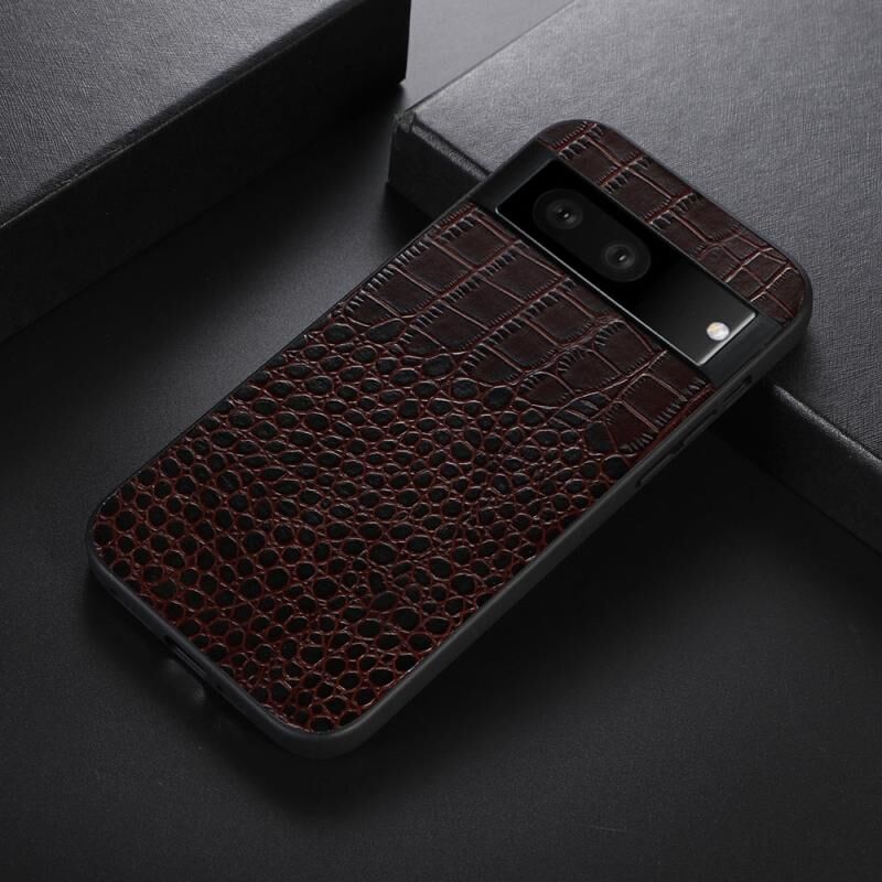 Θήκη τηλεφώνου από γνήσιο δέρμα αγελάδας με επικάλυψη κροκόδειλου για Google Pixel 7 5G (Καφέ)