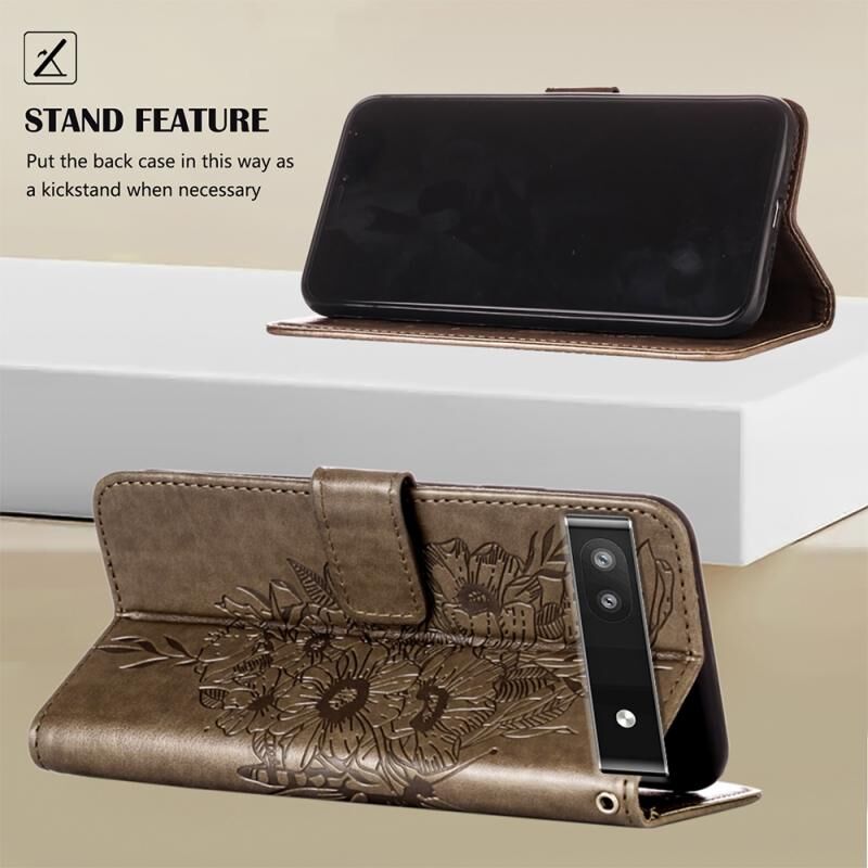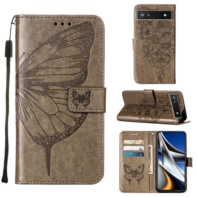 Θήκη τηλεφώνου δερμάτινη με ανάγλυφο σχέδιο πεταλούδας για Google Pixel 7 5G (Γκρι)