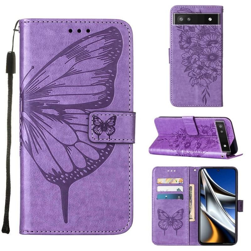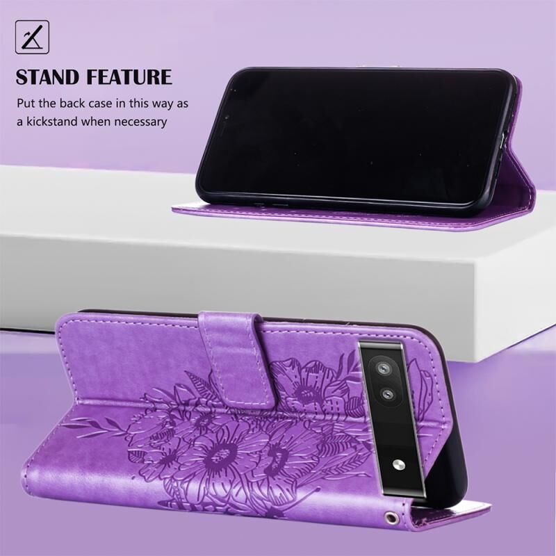 Θήκη τηλεφώνου δερμάτινη με ανάγλυφο σχέδιο πεταλούδας για Google Pixel 7 5G (Γκρι)