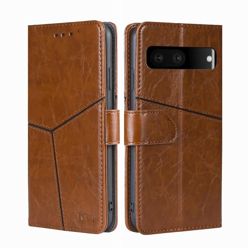 Για το Google Pixel 7 5G Γεωμετρική ραφή οριζόντια Flip TPU + PU δέρμα τηλέφωνο υπόθεση (ανοιχτό καφέ)