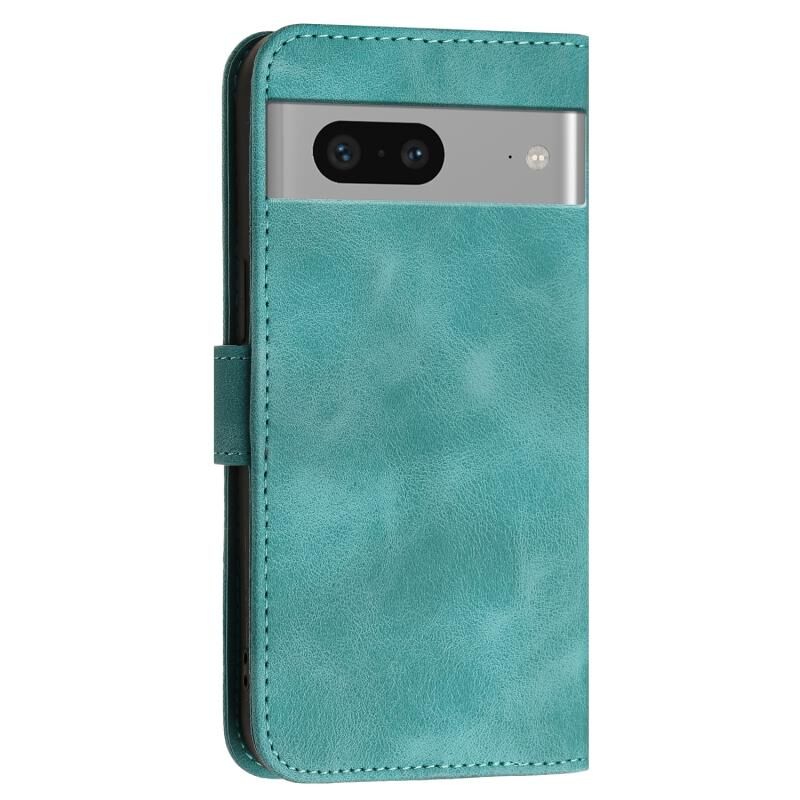 Θήκη τηλεφώνου από δέρμα με ανάγλυφο σχέδιο πλέγματος και πεταλούδας για Google Pixel 7 5G με κορδόνι (Σκούρο Μπλε)