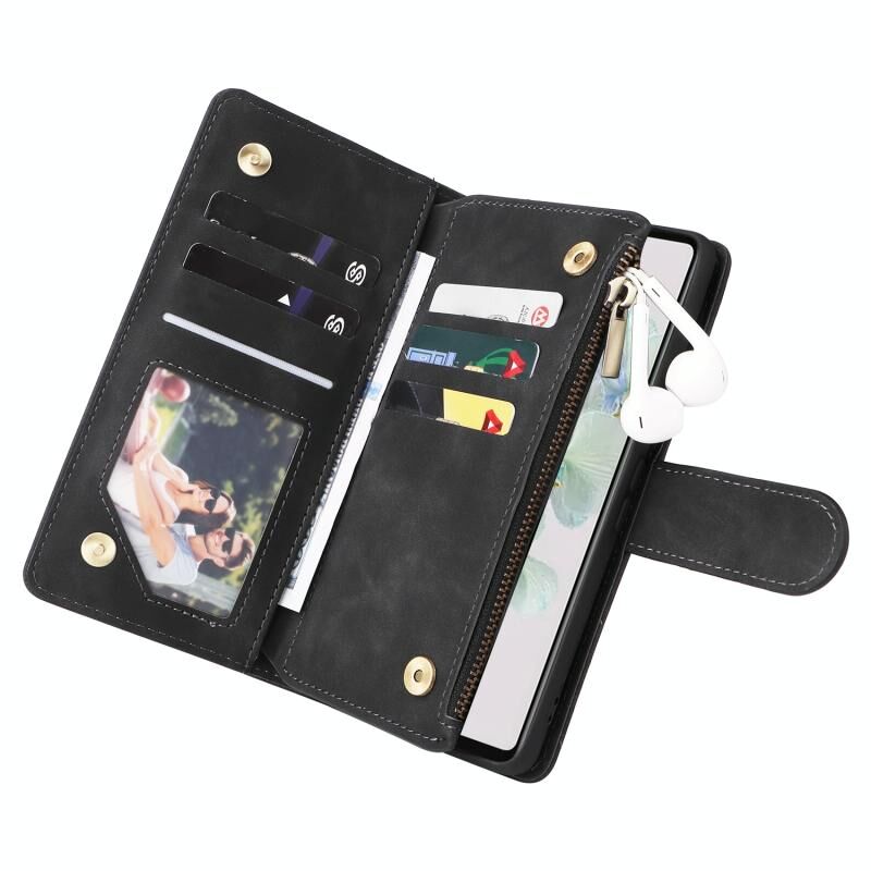 Για το Google Pixel 7 5G Πολυλειτουργικό παγωμένο φερμουάρ πορτοφόλι δερμάτινη θήκη τηλεφώνου (Μαύρο)