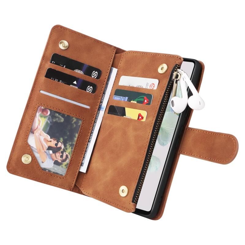 Για το Google Pixel 7 5G Πολυλειτουργική παγωμένο φερμουάρ πορτοφόλι δερμάτινη θήκη τηλεφώνου (καφέ)