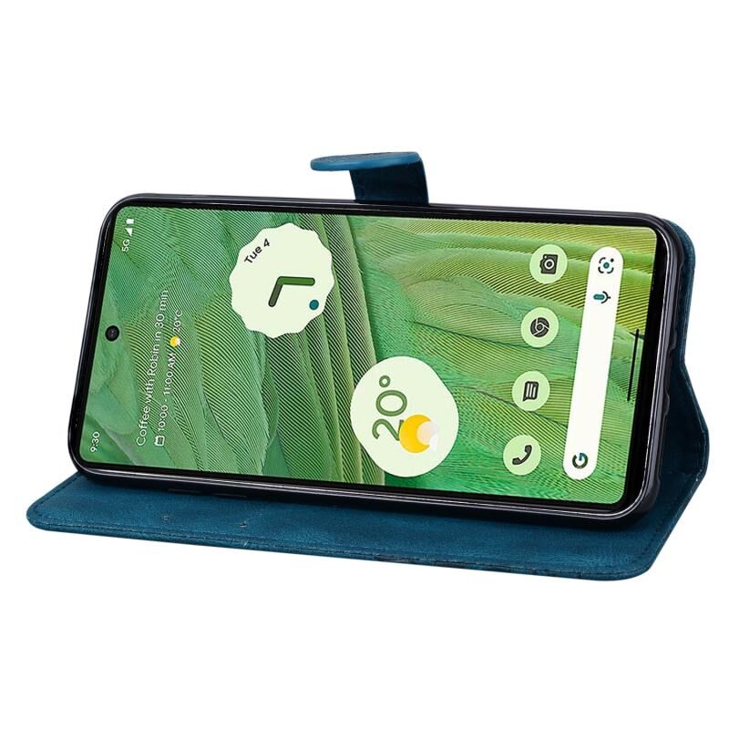 Θήκη τηλεφώνου από δέρμα με οριζόντιο άνοιγμα για Google Pixel 7 5G, με ανάγλυφο σχέδιο πεταλούδων και ρετρό αίσθηση (Μαύρο)