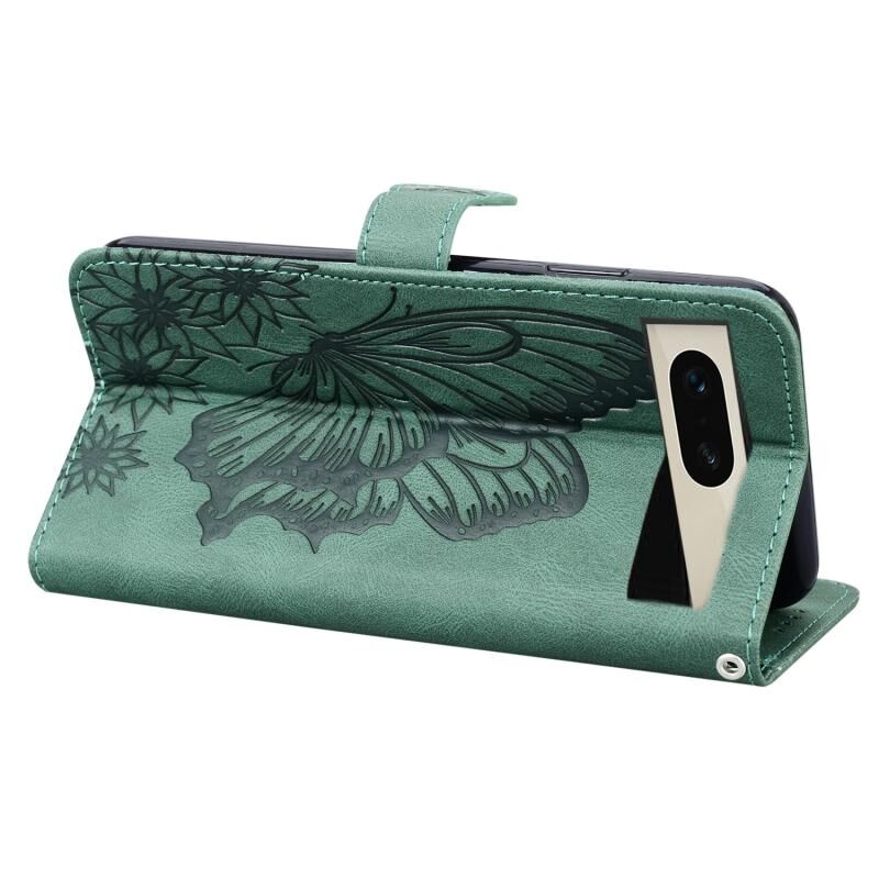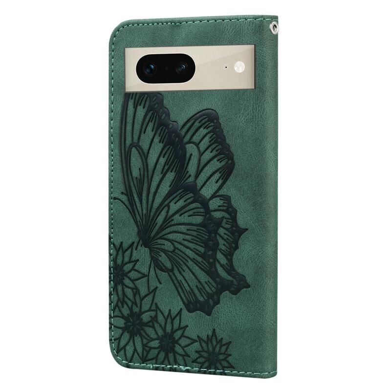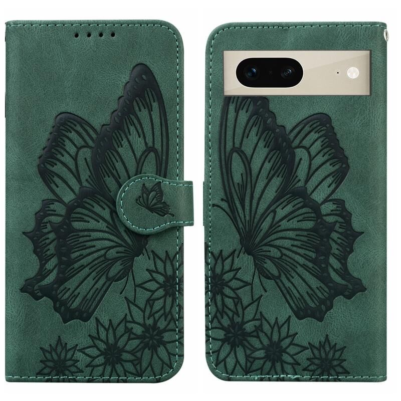 Θήκη τηλεφώνου από δέρμα με οριζόντιο άνοιγμα για Google Pixel 7 5G, με ανάγλυφο σχέδιο πεταλούδων και ρετρό αίσθηση (Μαύρο)