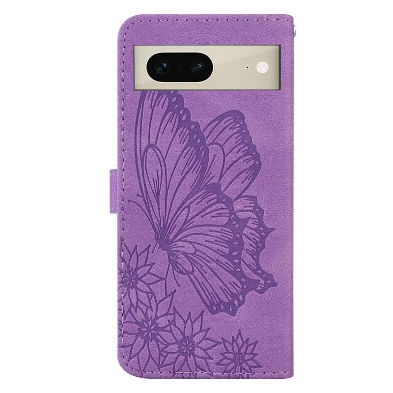 Θήκη τηλεφώνου από δέρμα με οριζόντιο άνοιγμα για Google Pixel 7 5G, με ανάγλυφο σχέδιο πεταλούδων και ρετρό αίσθηση (Μαύρο)