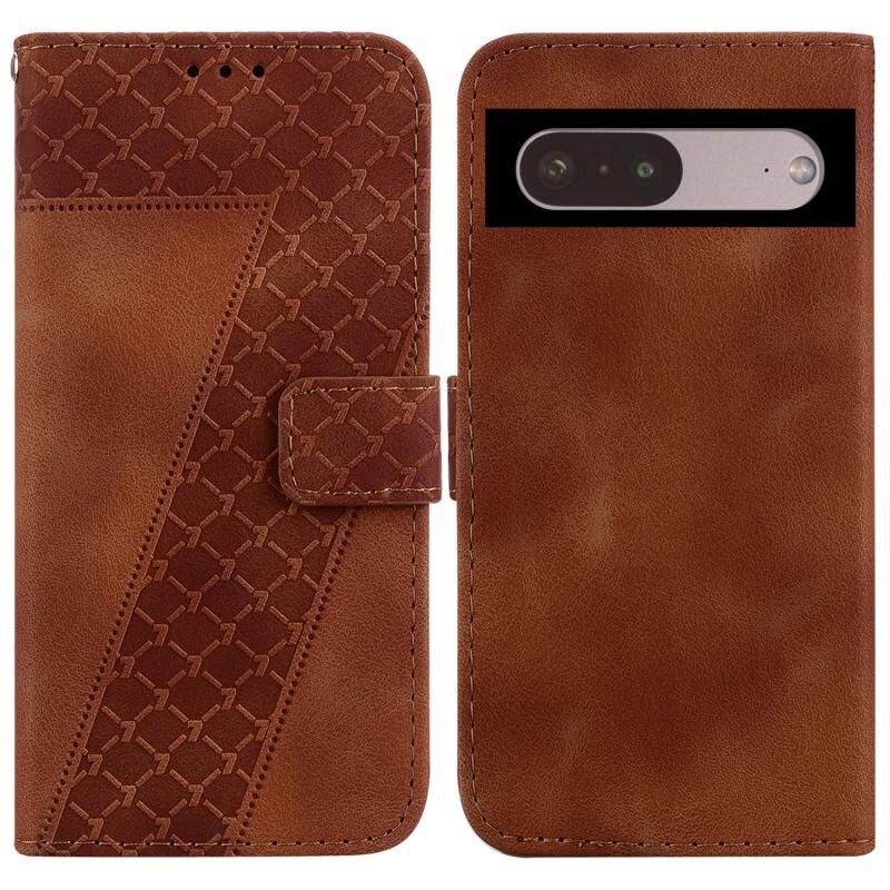 Θήκη τηλεφώνου από ανάγλυφο δέρμα σε σχήμα επτά για Google Pixel 7 5G (Καφέ)