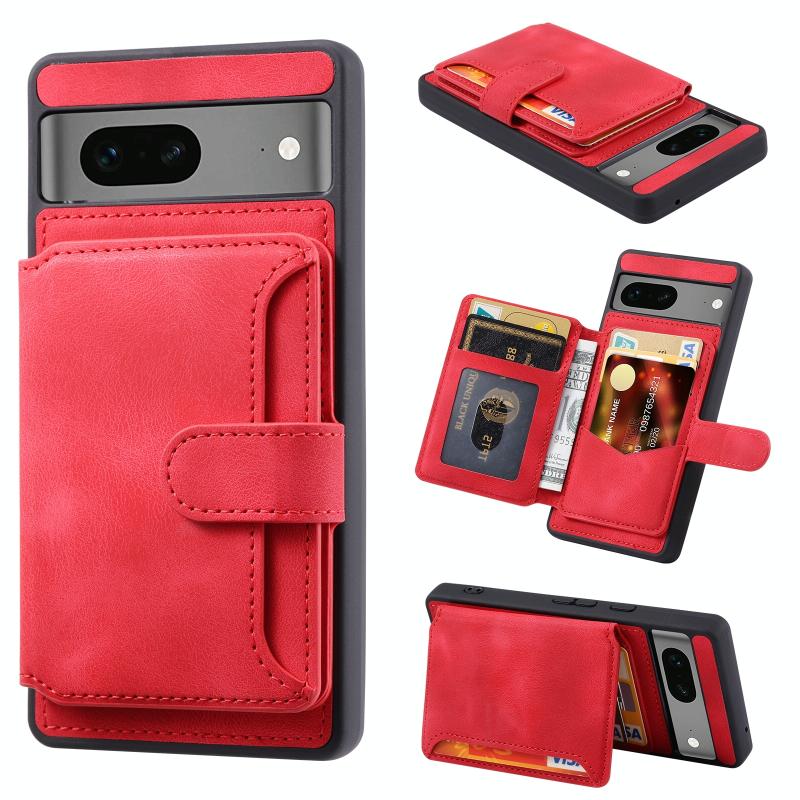 Θήκη κινητού τηλεφώνου Google Pixel 7 5G, αίσθηση δέρματος, αντι-κλοπής, ανθεκτική σε γρατζουνιές και κραδασμούς, φορητή, θήκη κάρτας (Κόκκινο)