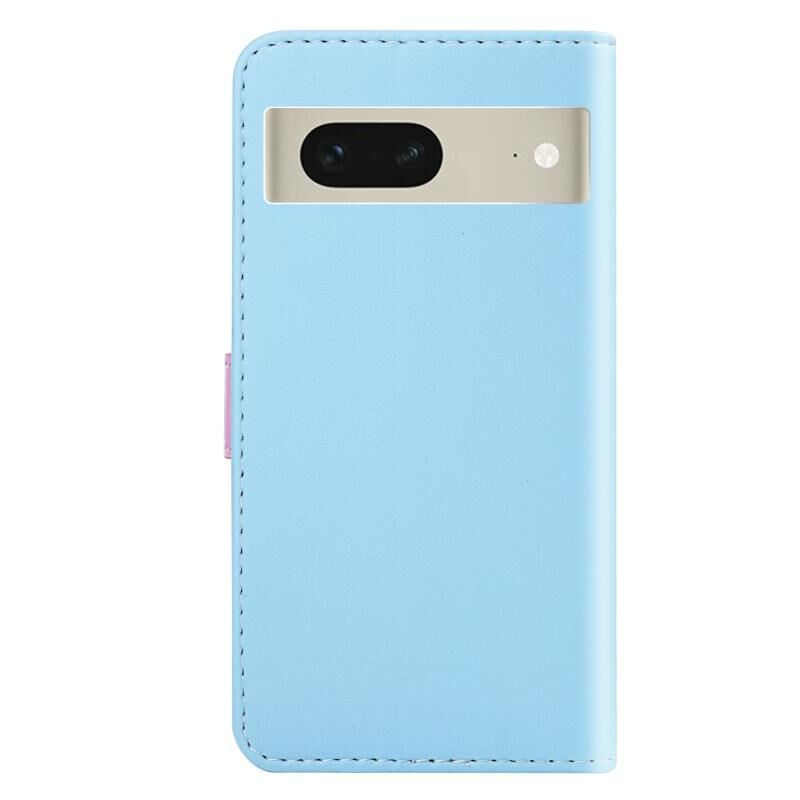 Για το Google Pixel 7 5G τρίχρωμη ραφή οριζόντια Flip δερμάτινη θήκη τηλεφώνου (μπλε)