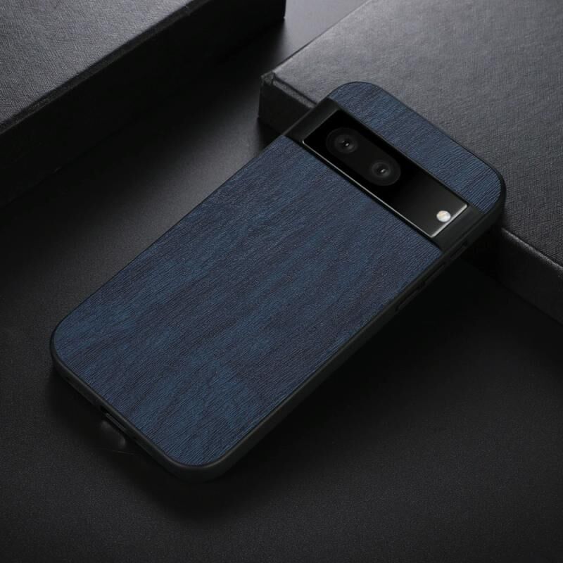 For Google Pixel 7 5G Wood Texture PU Phone Case(Blue)