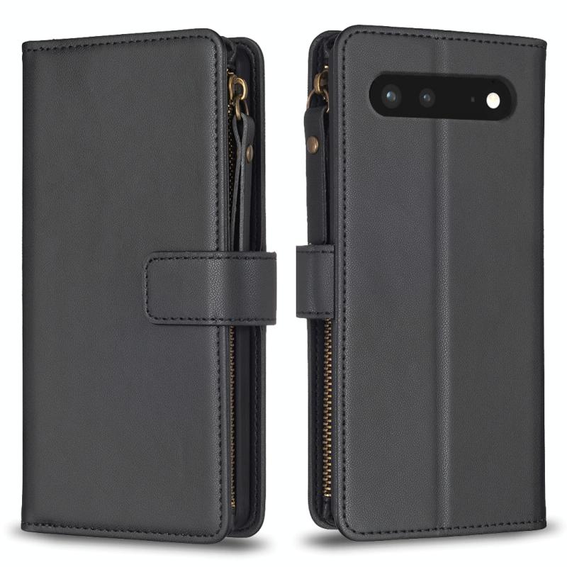 Θήκη τηλεφώνου Google Pixel 7, δερμάτινη, flip, με φερμουάρ και 9 θήκες για κάρτες (Χρυσό ροζ)