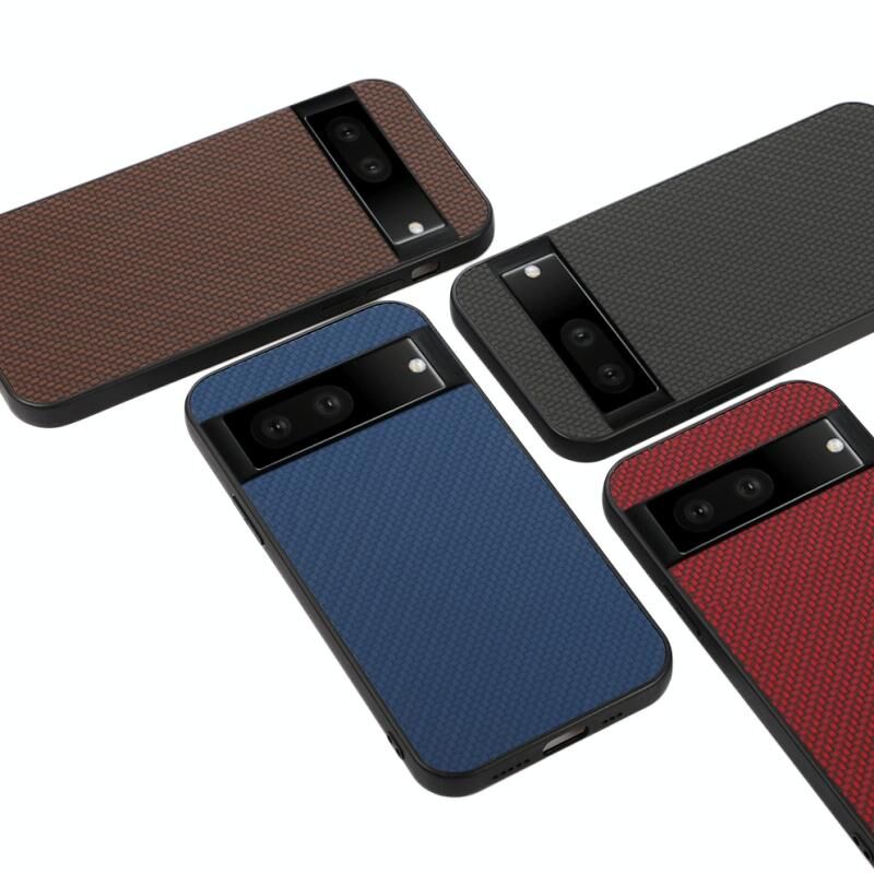 Για το Google Pixel 7 Ακριβής τρύπα ανθρακονήματα υφή PU υπόθεση τηλεφώνου (μπλε)