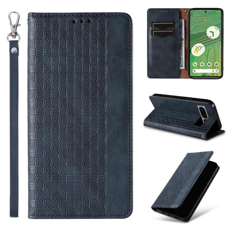 For Google Pixel 7 Braided Embossed Strong Magnetic Leather Phone Case(Blue)