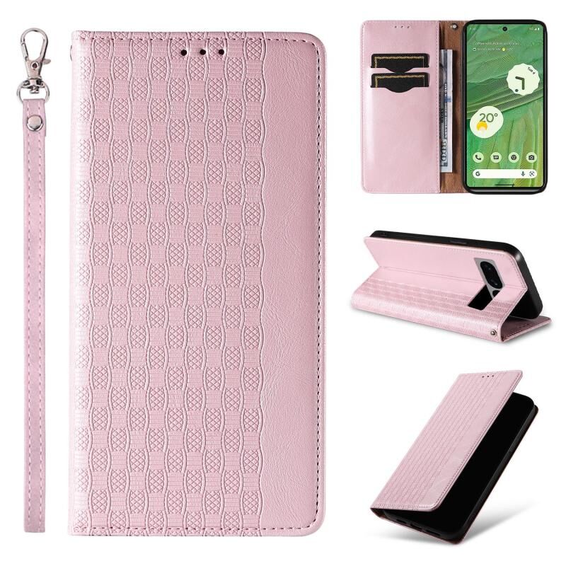 For Google Pixel 7 Braided Embossed Strong Magnetic Leather Phone Case(Pink)