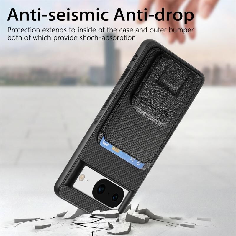 For Google Pixel 7 Carbon Fiber Card Bag Fold Stand Phone Case(Black)