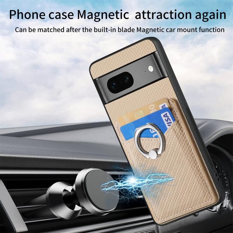 Για το Google Pixel 7 Carbon Fiber κάρτα πορτοφόλι δαχτυλίδι κάτοχος θήκη τηλεφώνου (χακί)