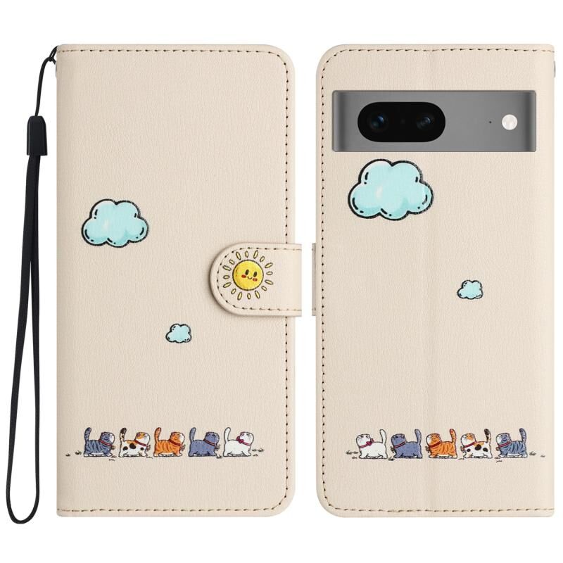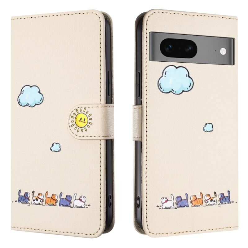 For Google Pixel 7 Cartoon Cats Leather Phone Case(Beige White)