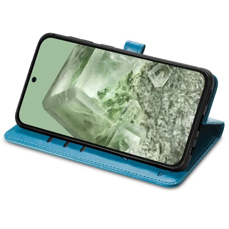 For Google Pixel 7 Cat and Dog Embossed Leather Phone Case(Blue)