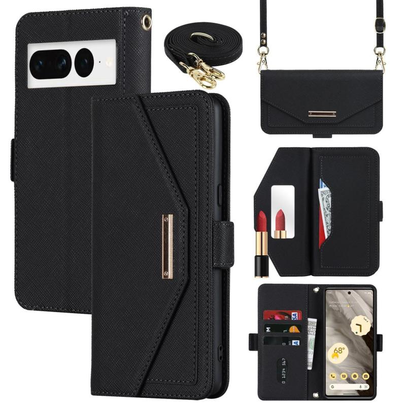 For Google Pixel 7 Cross Texture Crossbody Lanyard Leather Phone Case(Black)