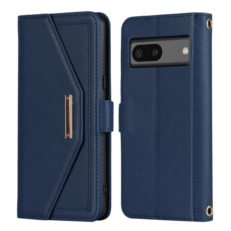 For Google Pixel 7 Cross Texture Crossbody Lanyard Leather Phone Case(Blue)