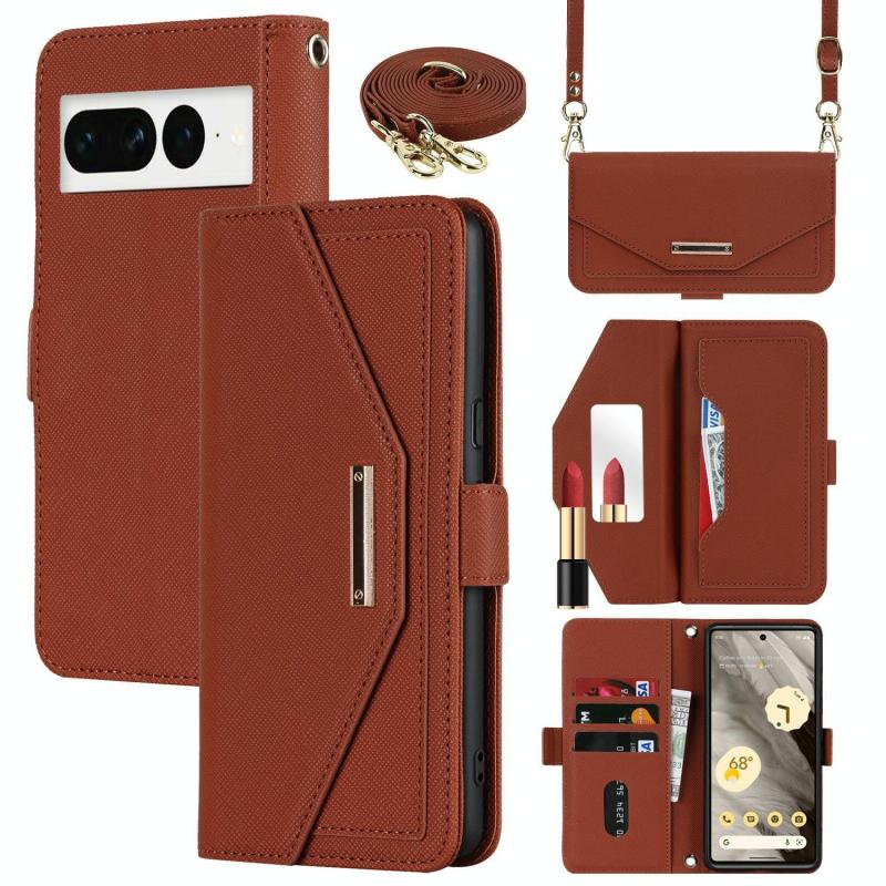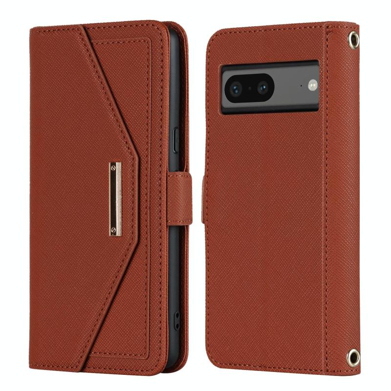 For Google Pixel 7 Cross Texture Crossbody Lanyard Leather Phone Case(Brown)