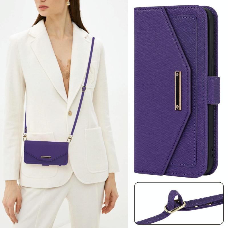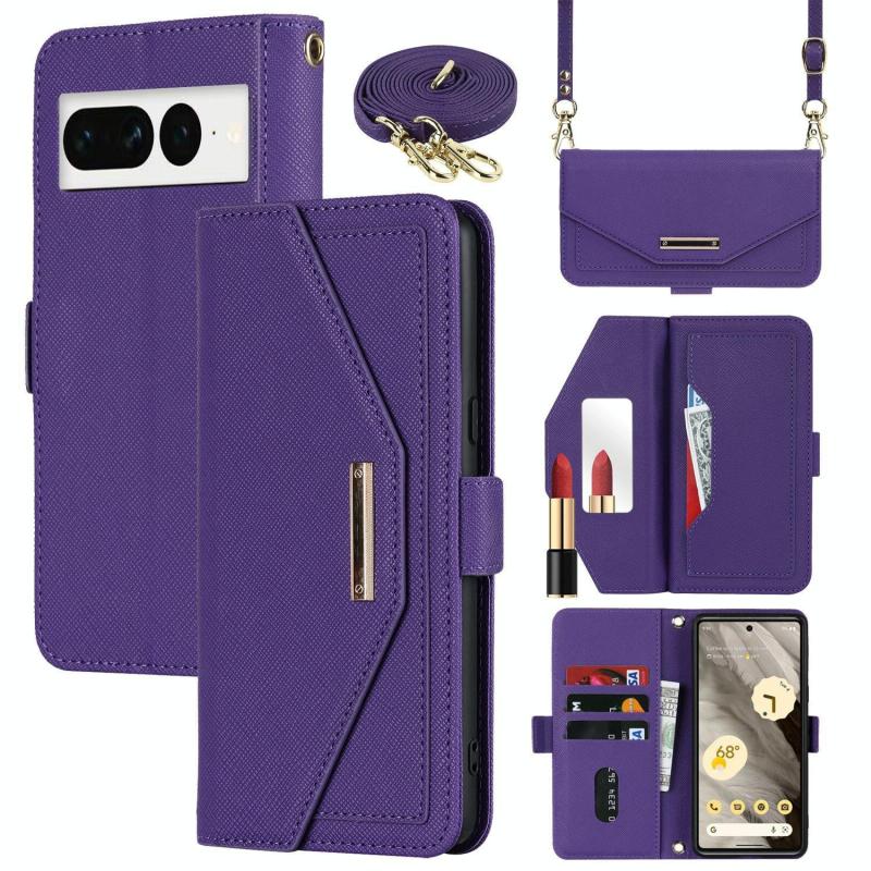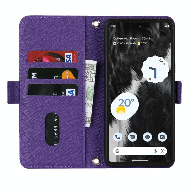 For Google Pixel 7 Cross Texture Crossbody Lanyard Leather Phone Case(Purple)