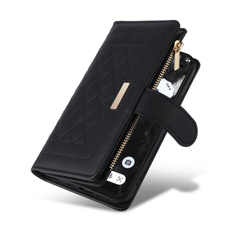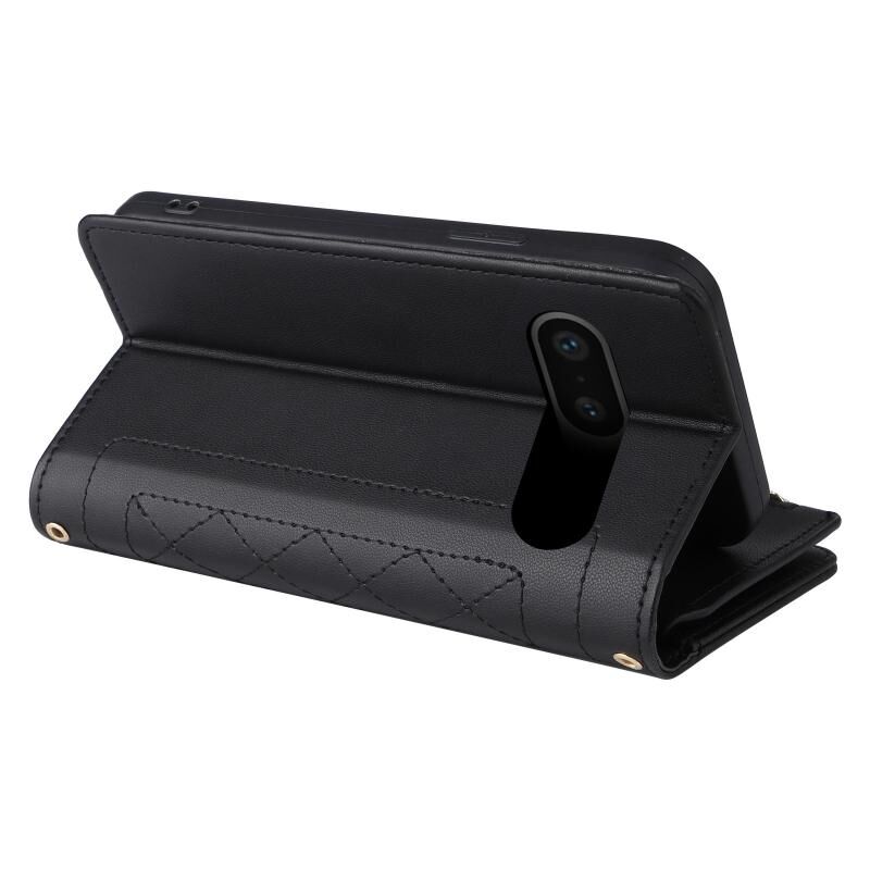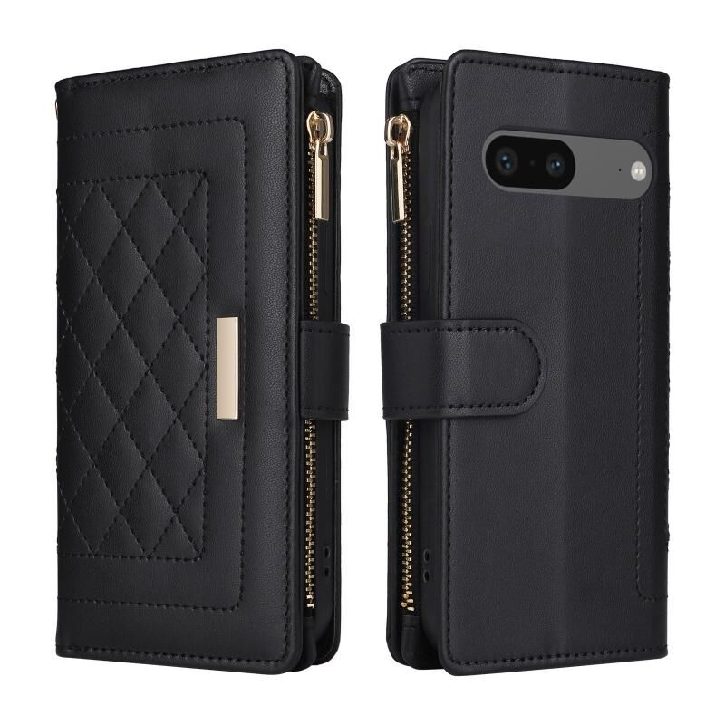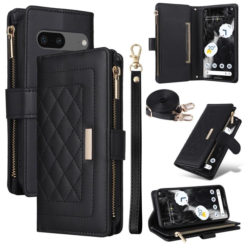 Για Google Pixel 7 Crossbody φερμουάρ πορτοφόλι Rhombus δερμάτινη θήκη τηλεφώνου (μαύρο)