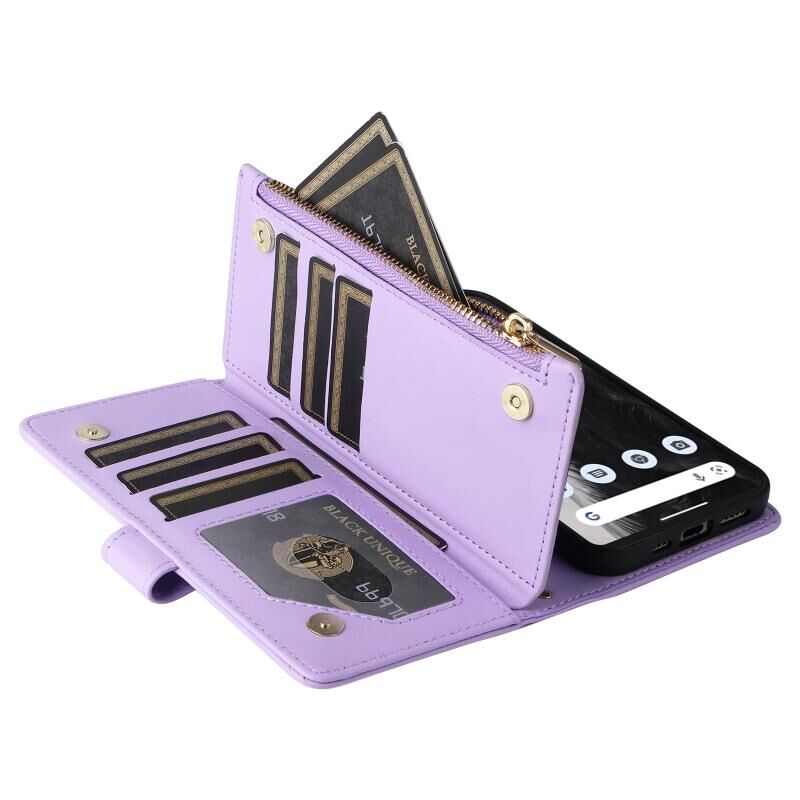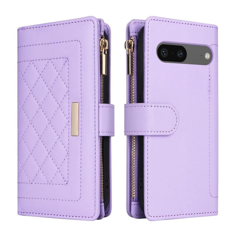 Για το Google Pixel 7 Crossbody φερμουάρ πορτοφόλι Rhombus δερμάτινη θήκη τηλεφώνου (μωβ)