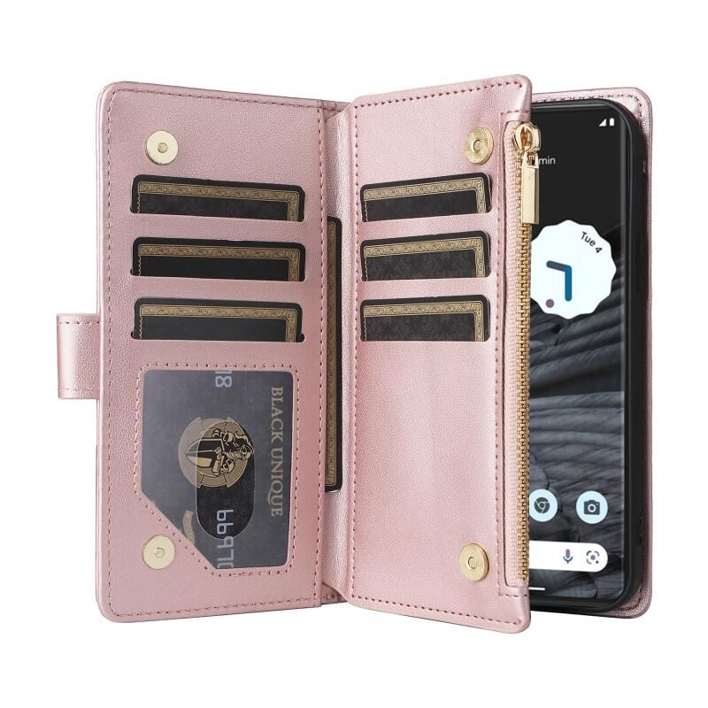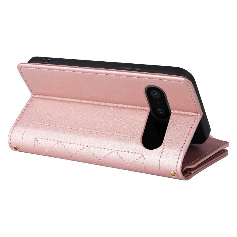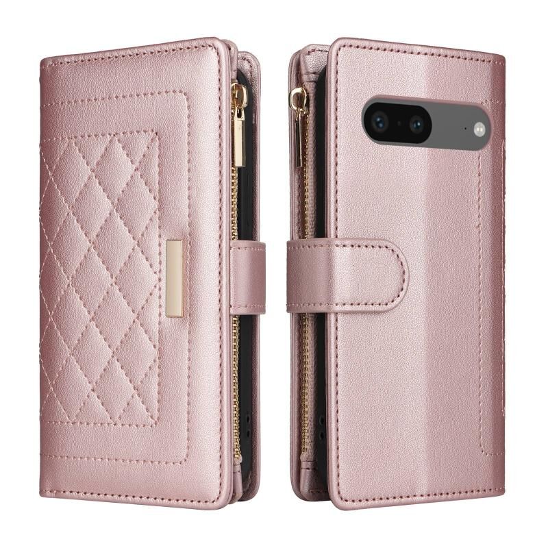 Για το Google Pixel 7 Crossbody φερμουάρ πορτοφόλι Rhombus δερμάτινη θήκη τηλεφώνου (ροζ χρυσό)