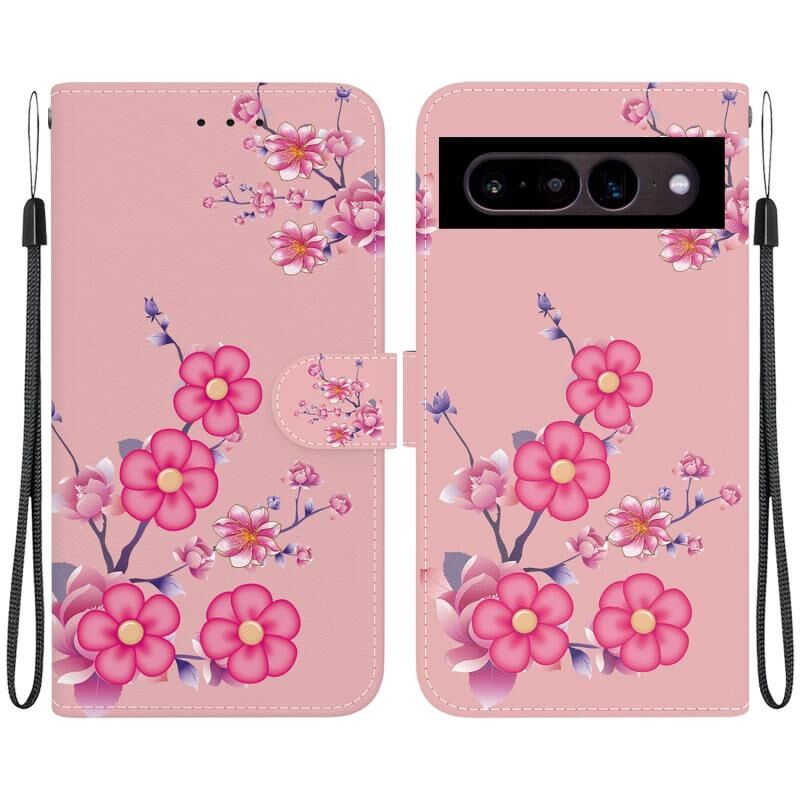 For Google Pixel 7 Crystal Texture Colored Drawing Leather Phone Case(Cherry Blossoms)
