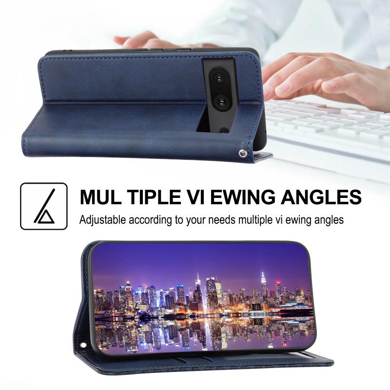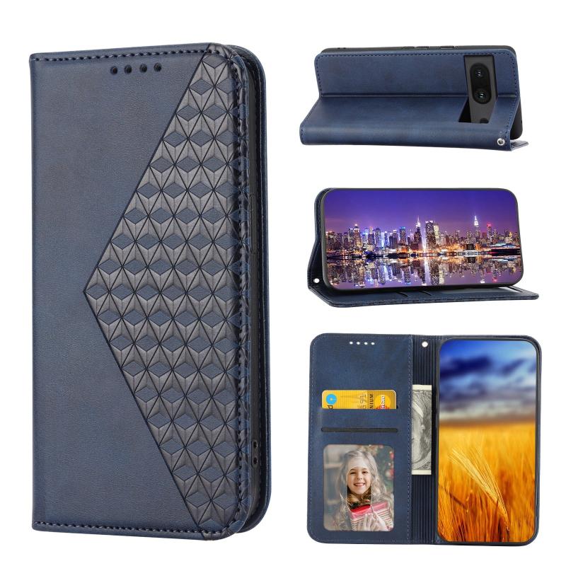 For Google Pixel 7 Cubic Grid Calf Texture Magnetic Closure Leather Phone Case(Blue)