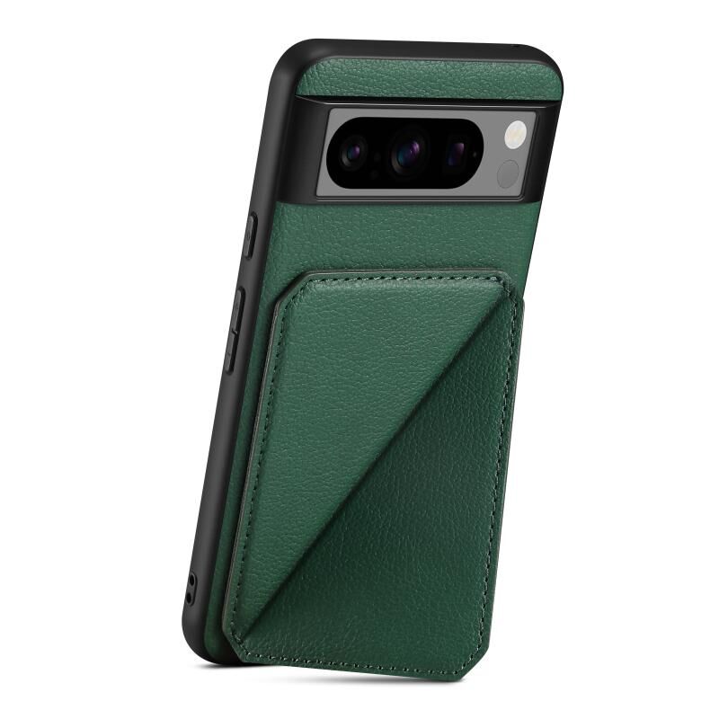 For Google Pixel 7 Denior Calf Texture Holder Electroplating Phone Case(Green) (Denior)