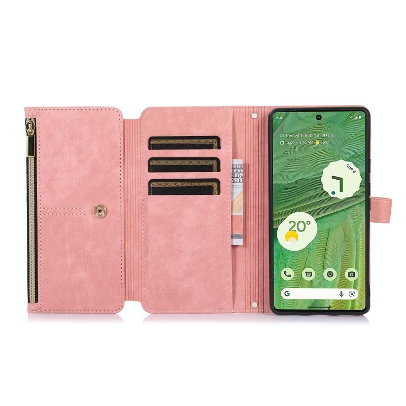 Για το Google Pixel 7 Dream 9-Card πορτοφόλι φερμουάρ τσάντα δερμάτινη θήκη τηλεφώνου (ροζ)