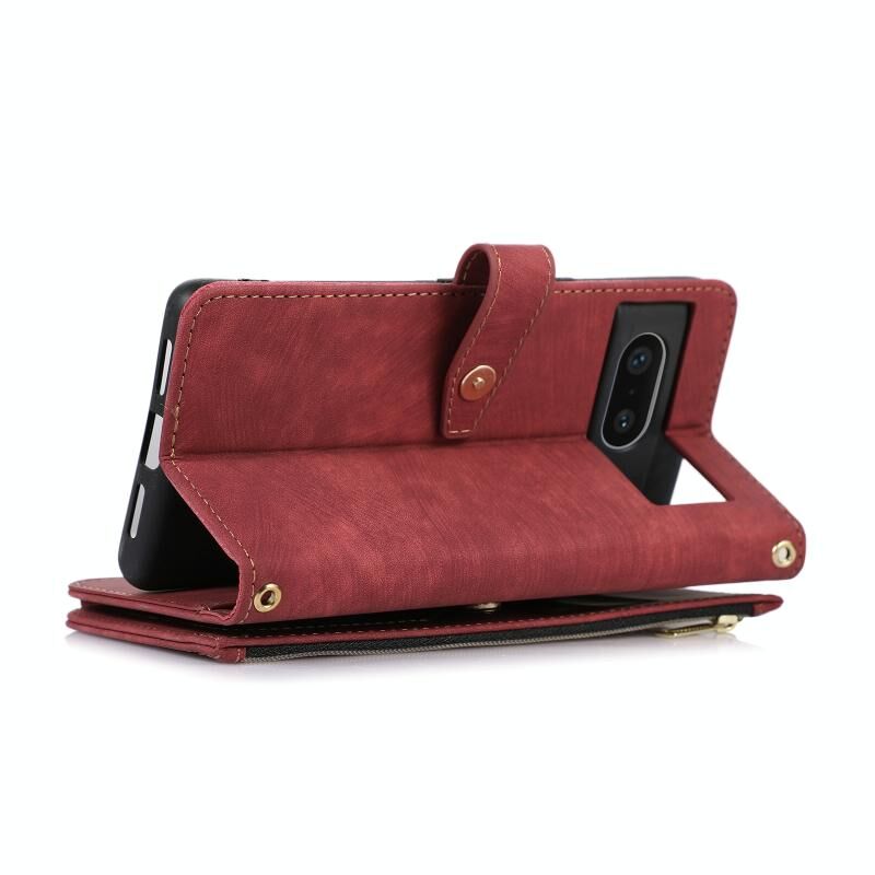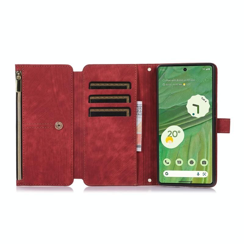 Για το Google Pixel 7 Dream 9-Card πορτοφόλι φερμουάρ τσάντα δερμάτινη θήκη τηλεφώνου (κόκκινο)