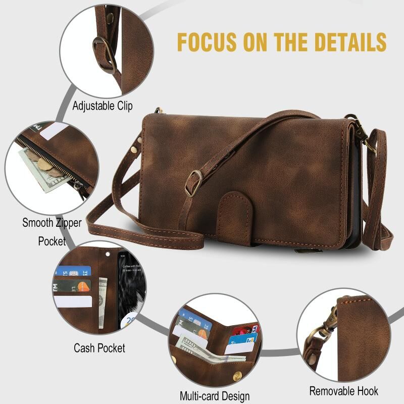 2. Λειτουργία πορτοφολιού πολλαπλών καρτών: 9 υποδοχές για κάρτες και 1 θήκη μετρητών με φερμουάρ για να αποθηκεύετε τις πιστωτικές σας κάρτες, μετρητά ή μικρά χαρτονομίσματα για τις καθημερινές σας ανάγκες.