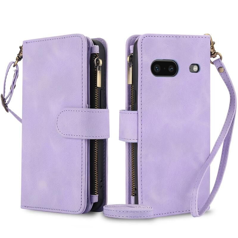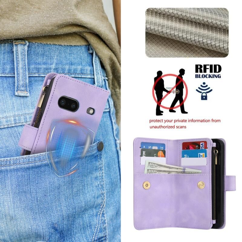 Για Google Pixel 7 Dream 9-Card φερμουάρ πορτοφόλι RFID δερμάτινη θήκη τηλεφώνου με κορδόνι (μωβ)