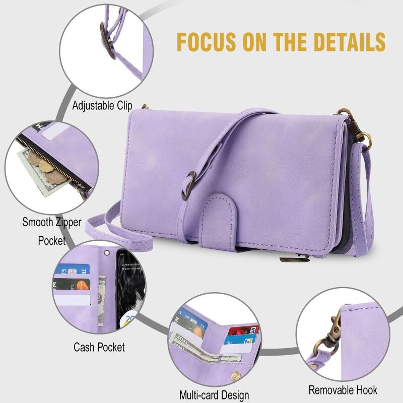 2. Λειτουργία πορτοφολιού πολλαπλών καρτών: 9 υποδοχές για κάρτες και 1 θήκη μετρητών με φερμουάρ για να αποθηκεύετε τις πιστωτικές σας κάρτες, μετρητά ή μικρά χαρτονομίσματα για τις καθημερινές σας ανάγκες.
