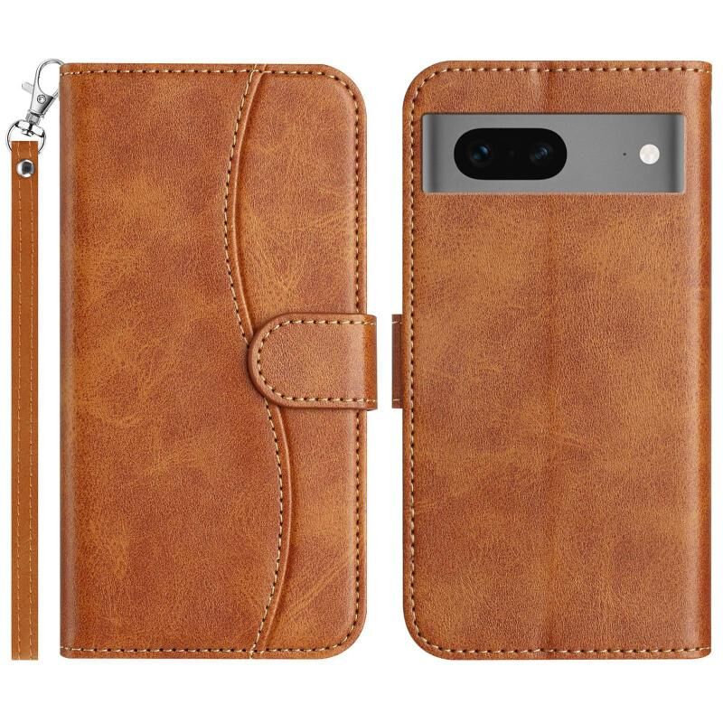 For Google Pixel 7 Dual-Folded S-shape Leather Phone Case(Brown)