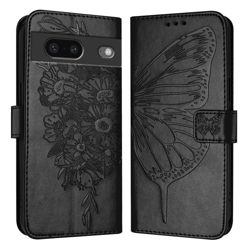 For Google Pixel 7 Embossed Butterfly Leather Phone Case(Black)